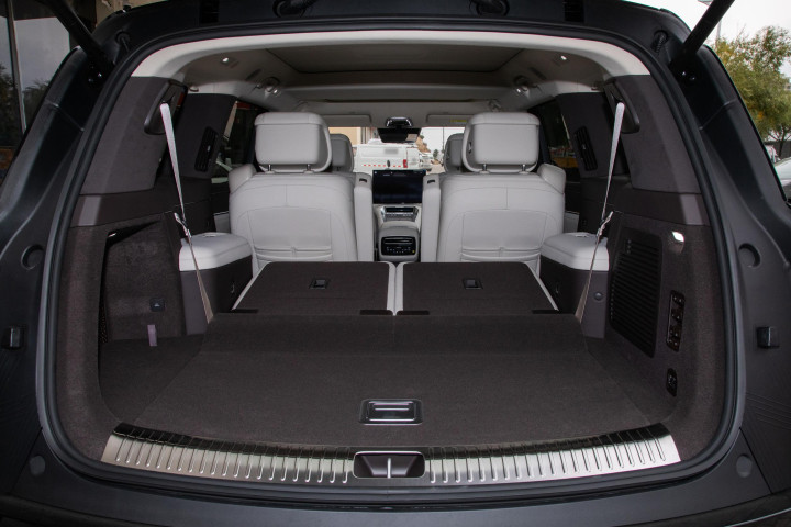 后备箱空间也挺灵活,三排都用时还可以放下俩登机箱,有些日常出游场景比如儿童推车、折叠轮椅都轻松放入,如果偶尔只要五人出行,把第三排放倒就是一个超大空间,像搬家、钓鱼、露营都很方便。有意思的是隐藏储物空间,比如第二排下方能放拖鞋,第三排侧边小格可以放零食和水瓶,这种细节设计体现了厂家对家庭场景的思考。