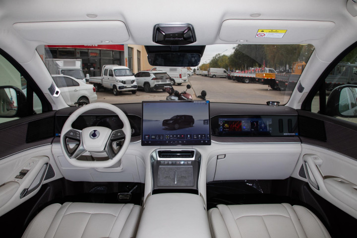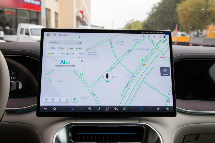智能座舱是这车的主打,三块屏幕联动:仪表盘、中控大屏和副驾娱乐屏都是2.5K高分辨率,阳光下也不反光。这点细节对南方多阳光的城市来说很重要。中控屏支持多分屏,可以同时操作导航和音乐,主副驾可以各自调整需要的信息,不用抢屏。AR-HUD也是个亮点,信息直接投射在前挡玻璃上,实际体验导航指示很清楚,尤其是进出拥堵路口时不用低头看屏,安全感提升不少。